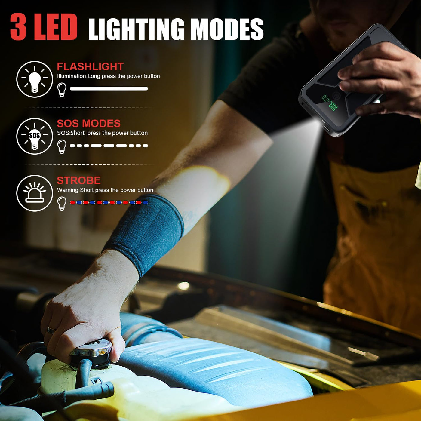 Khazixer ET02 Car Battery Jump Starter 3000A Peak, 12V Lithium Portable Jumper Starter for up to 9.0L Gas and 7.0L Diesel Engines, 12V Battery Jump Starter with Jumper Cable