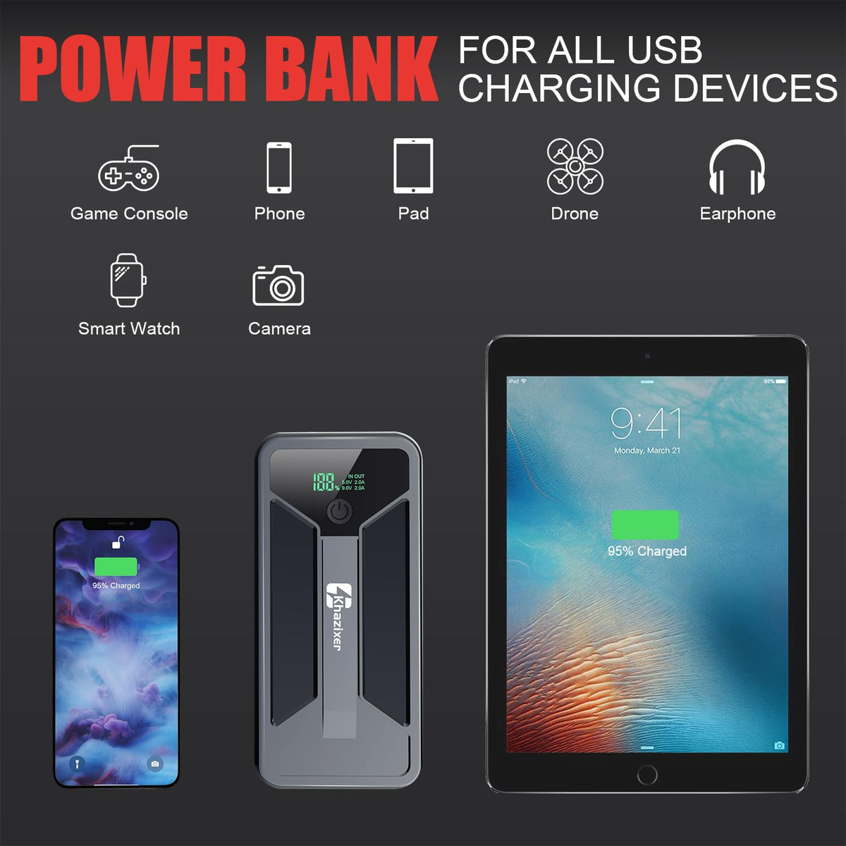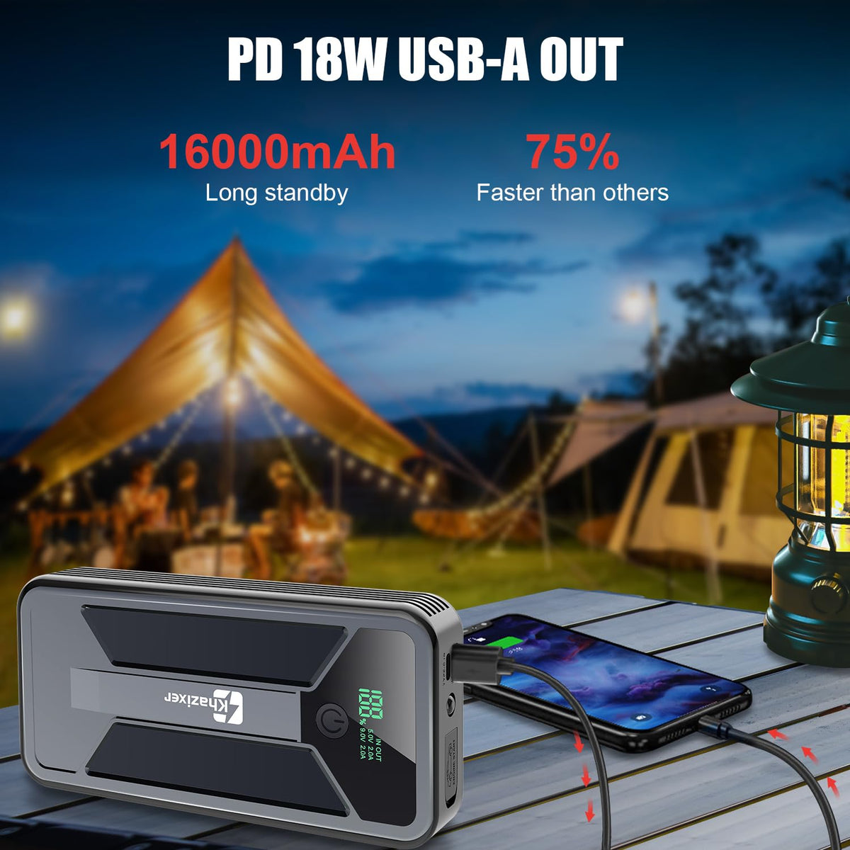 Khazixer Et02 Car Battery Jump Starter 4000A Peak, 12V Lithium Portable Jumper Starter For Up To 10.0L Gas And 8.0L Diesel Engin