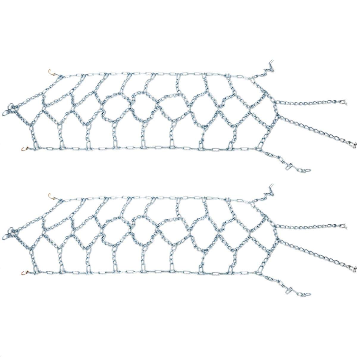 Q: What materials are used in the construction of the tire chain?A: The tire chain is made from hardened alloy steel, featuring aggressive V-Bars designed to provide excellent traction in demanding conditions.