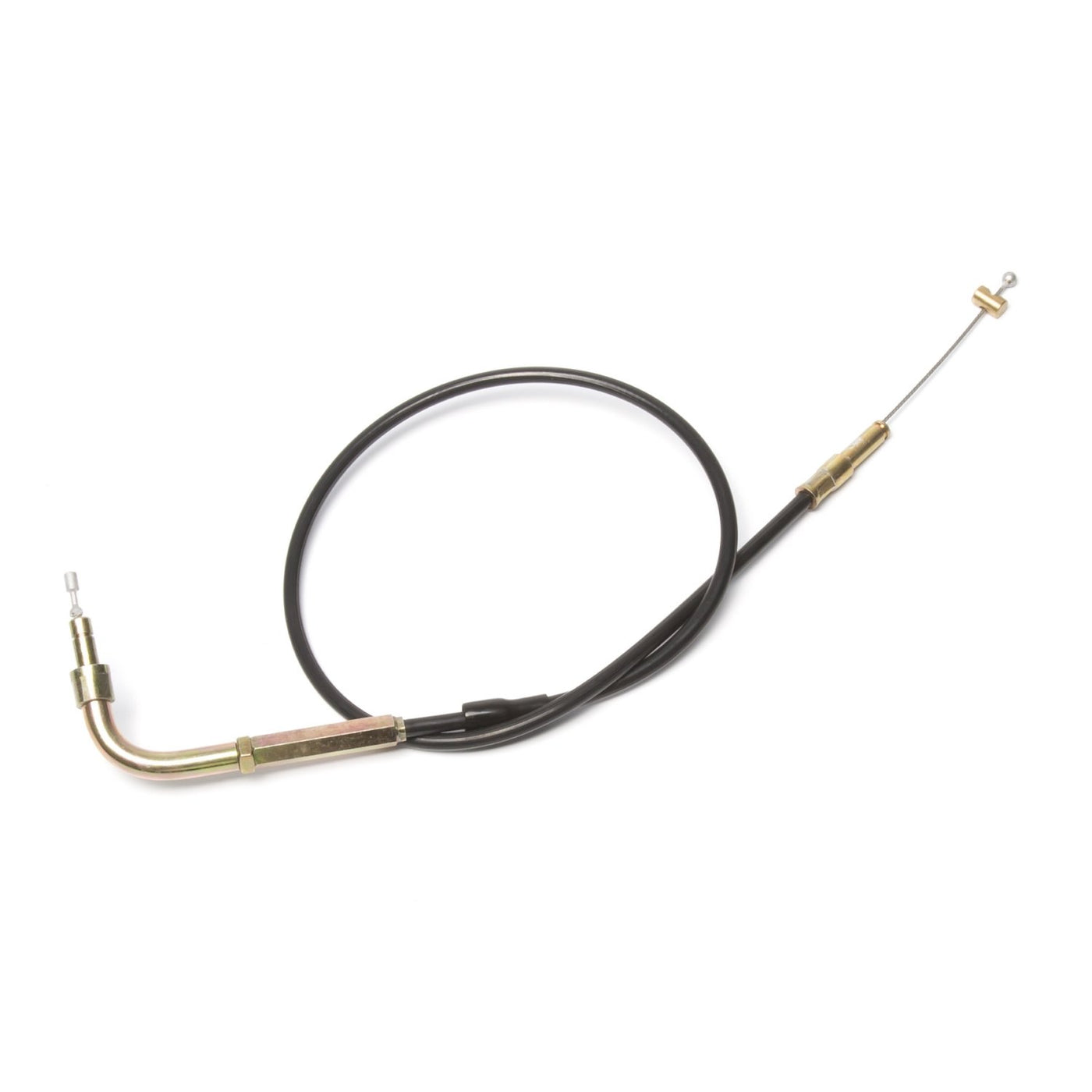 Q: What materials are used in the construction of this throttle cable?A: The throttle cable is made from high-quality steel and vinyl, featuring a black vinyl coil-wound housing for durability and reliable performance.