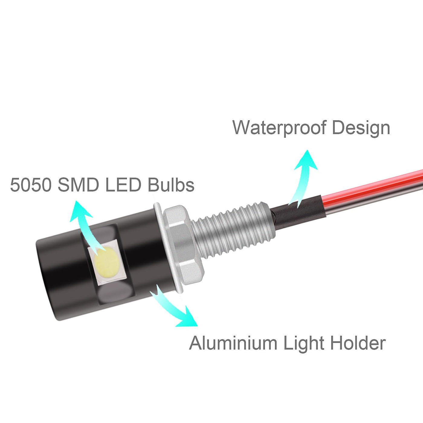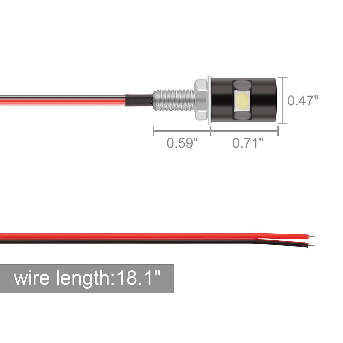 Specifications: Color Of The Case: Black Color Of The Light: Cool White Bulb: 5050 Smd Led Volt: 12V Quantity Of Led Per Light: One Led Size: 1.3X 0.47X0.47' Wire'S Length: 18.1'