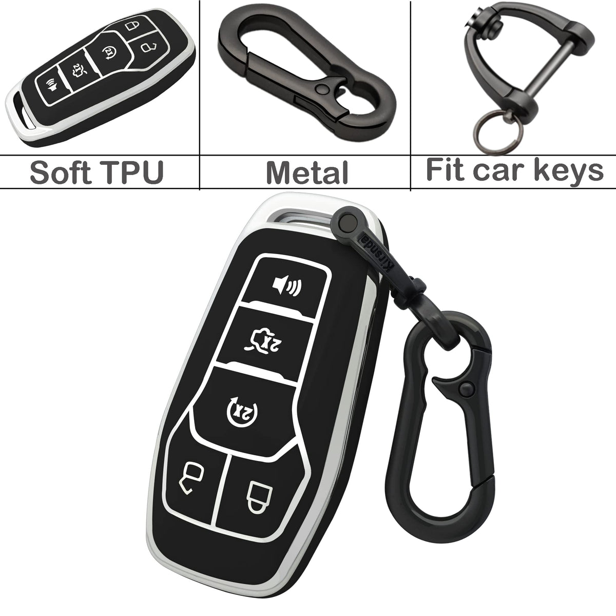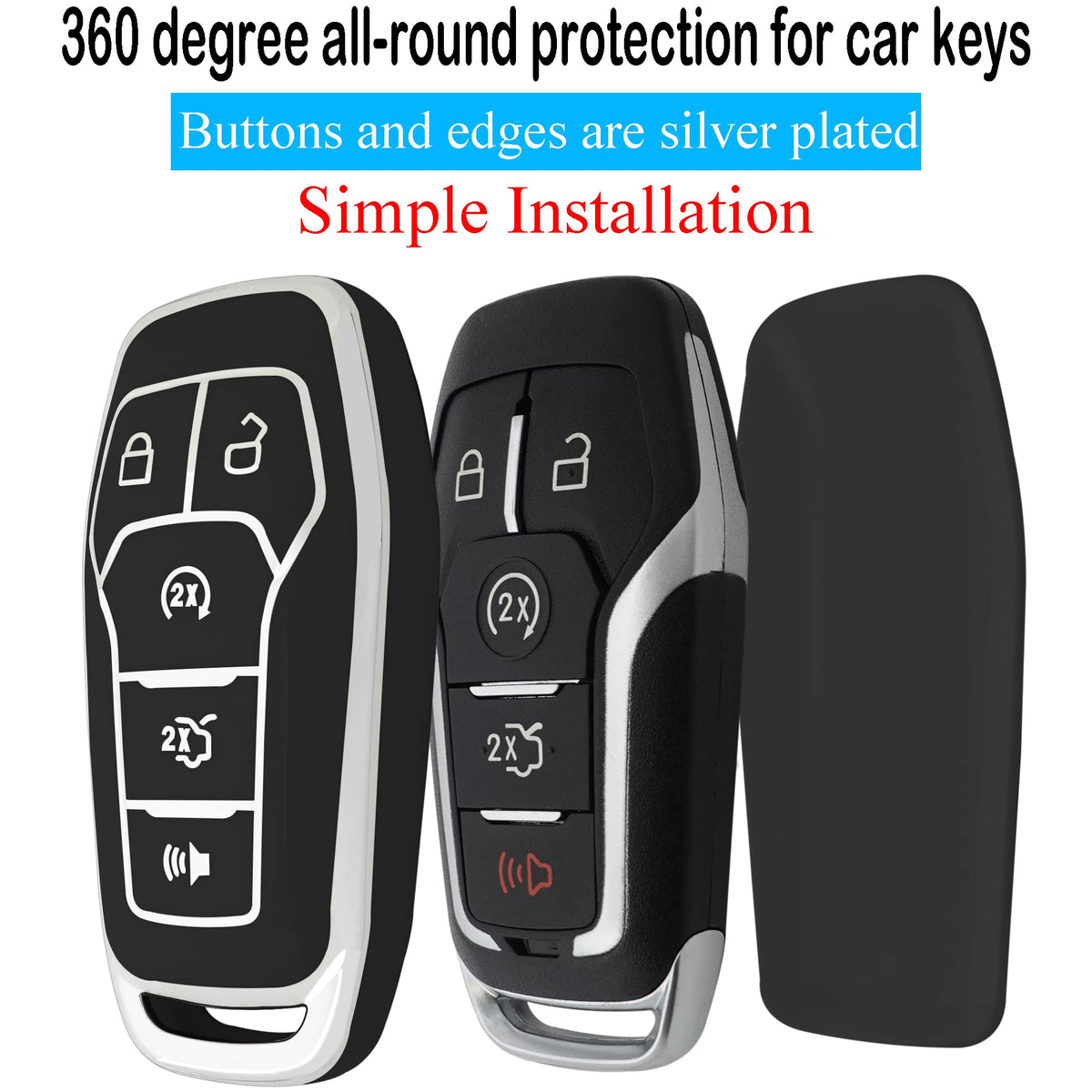 [Quality assured]: The car key case is made of high-quality soft TPU material, three-layer chrome plating process, scratch-resistant, and you don't have to worry about fading. Installation is as easy as installing a phone case.(Smart car key not included) | [Compatible car key fob models]:2016 2017 Explorer for Mustang Edge Fusion MKZ MKC ,Etc 5-button car keys.Depending on the model and year of the car, the car key will vary.please refer to picture 2. | [Does not affect the key function]: the key shell does not affect the signal output of the car key.Installation will not destroy the original car key. | [Fashion car key skin]: Multiple color options paired with a beautiful key fob that provides full protection without confusing it with other keys. Improve keychain without worrying about losing your expensive car keys with loose screws. | [After-sale service]: If you encounter problems with our products, please contact us, Kirsnda will provide customer satisfaction solutions.