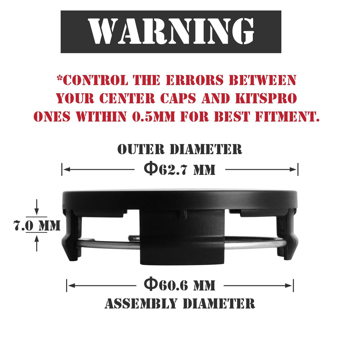 Kitspro Wheel Center Caps Are Designed To Replace The Old, Broken Or Missing Caps With Easy Installation. All Wheel Center Caps Are Made Of Heat And Impact Resistant Materials Which Have Been Tested To Insure A Secure And Reinforced Fitment. Each Set Contains 4 Pieces Of Wheel Center Caps. Please Make Sure That The Size Of The Wheel Center Caps Match Yours. ||Product Parameter: 1).Outer Diameter: 2.5 Inch 63Mm; 2).Assembly Diameter: 2.4 Inch 61Mm; 3).Length Of Clip: 0.3 Inch 7Mm.