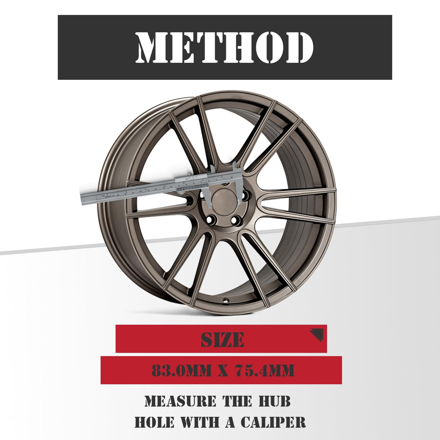 Q: How do I measure my wheel rim hole to ensure a proper fit?A: To measure your wheel rim hole, use a caliper or ruler to find the diameter of the hole where the center cap fits. Ensure that the outer diameter of the cap is 83mm and the inner assembly diameter is 75mm for a secure fit. If you're unsure, you can refer to measurement videos or contact customer support for assistance.