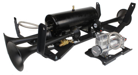 The Gm1500-734 Onboard Air System With Model 730 Train Horn Is 100% Bolt-On And Features A High Output Klein Waterproof Air Compressor With 3-Gallon Air Tank Mounted On A Custom, Made In The Usa, Mounting Bracket. Using Basic Hand Tools, Anyone Can Install Their Own Onboard Air System – All Without Drilling A Single Hole! Includes A Quick Connect Tire Inflator With Remote Mount And Storage Bag. Everything Needed Comes In One Box For A Professional & Flawless Installation. The System Is Capable Of Inflating Large Tires, Powering Air Bags And Operating Small Air Tools. It Can Also Be Upgraded With The P/N 6890 Ultra Blast Master Valve Upgrade To Make The Horns Even Louder!