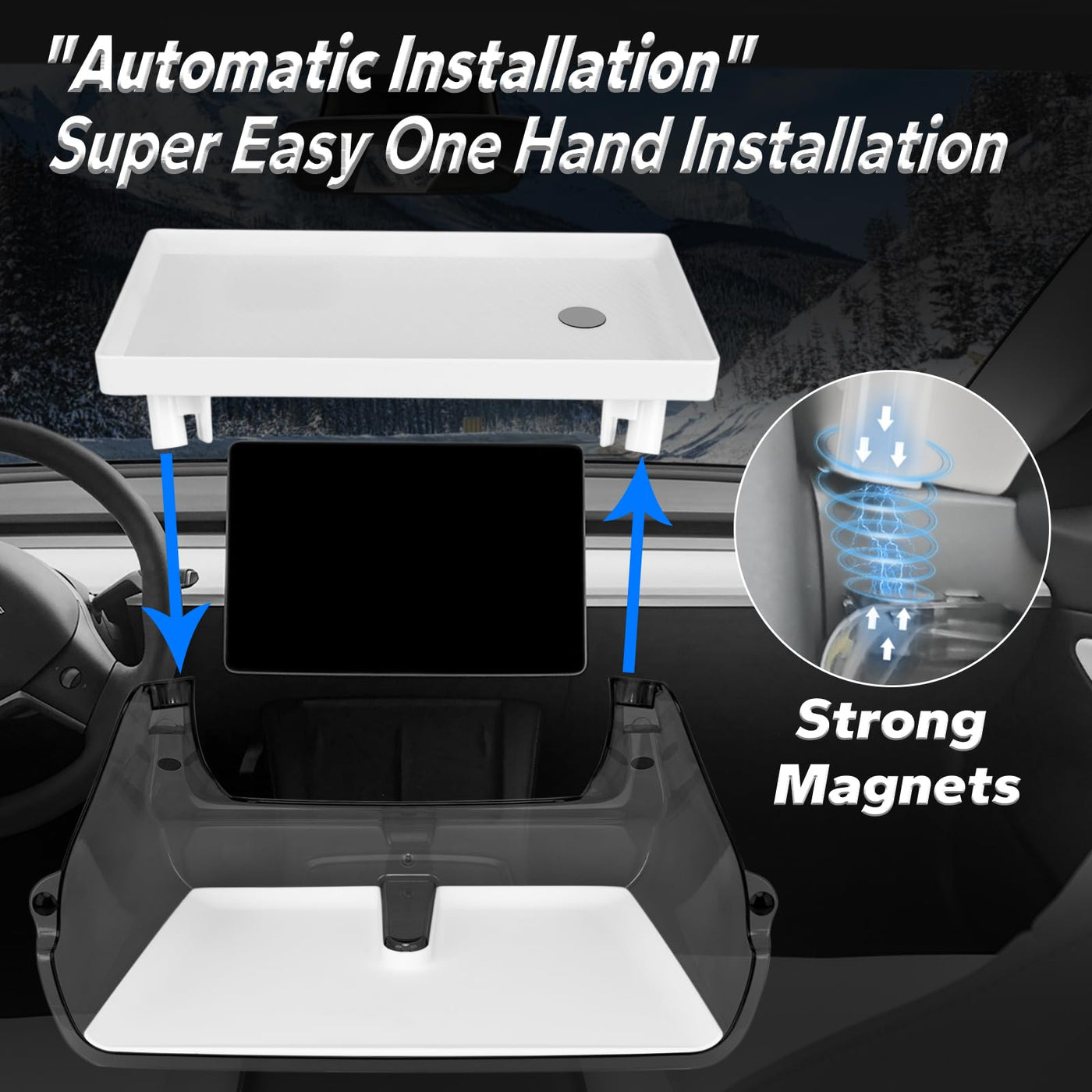 Klutchtech Telsa Model 3 Model Y Center Console Organizer Tray Magnetic Under Screen Storage Box Behind Screen Tray Dashboard Or