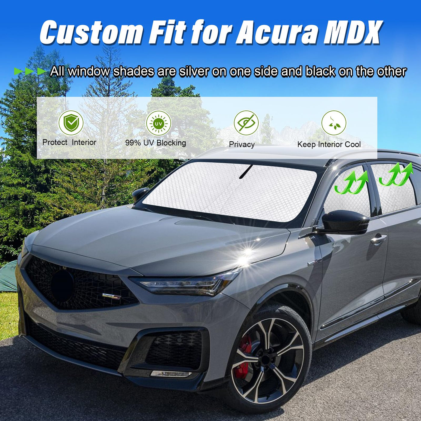 Kmf Windshield Sun Shade Replacement For Acura Mdx Accessories 2021-2024, Side Window Sun Shade Cover Sun Visor Shield Cover, Re