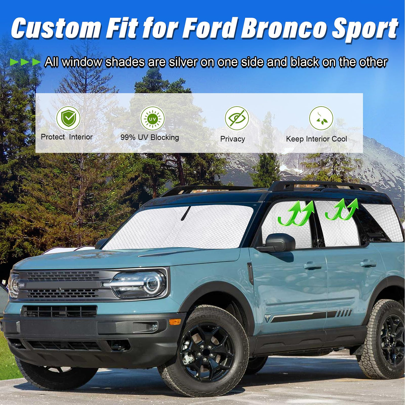 Windshield Sun Shade Replacement For Ford Bronco Sport Accessories 2021-2024, Side Window Sun Shade Cover Sun Visor Shield Cover, Rear Window Sunshade For Camping/Baby Uv Block And Privacy Protect