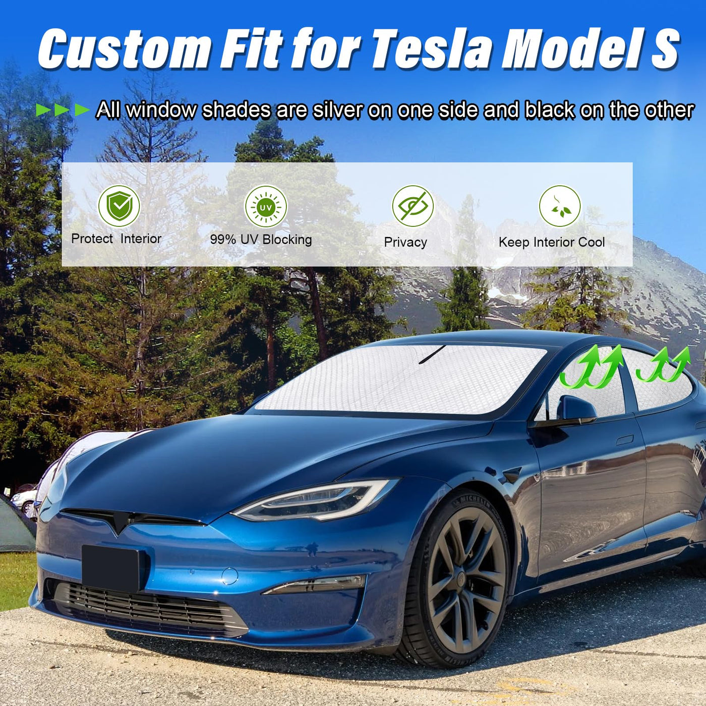 Windshield Sun Shade Replacement For Tesla Model S Accessories 2021-2024, Side Window Sun Shade,Sun Visor Shield Cover,Rear Window Sunshade For Camping/Baby Uv Block And Privacy Protect