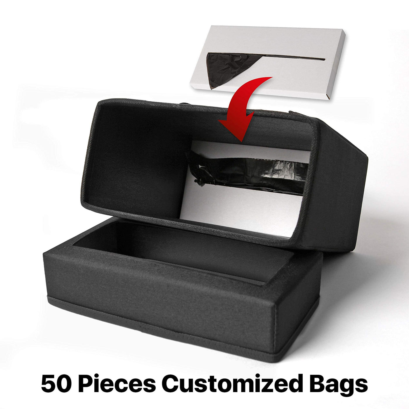 Q: Does the trash can come with any additional accessories?A: Yes, the KMMOTORS Aladdin Car Trash Can includes 50 plastic trash bags, so you have a ready supply of liners to keep your car clean and tidy.