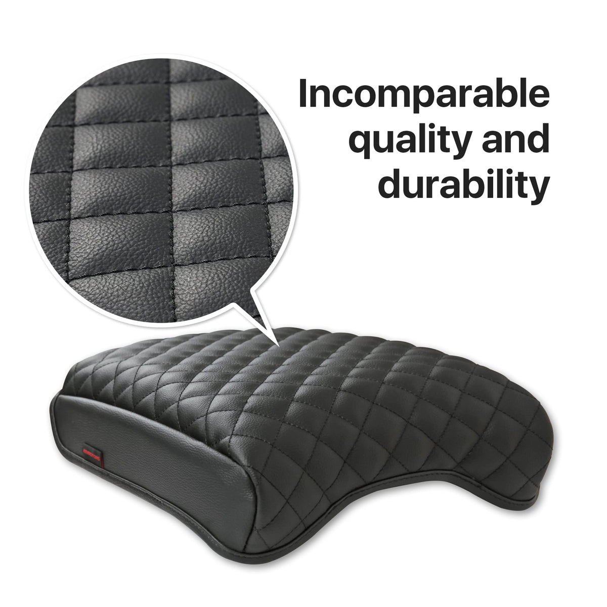 Q: What material is the KMMOTORS MDX Armrest Cushion made from?A: The KMMOTORS MDX Armrest Cushion is made from high-quality vegan leather, providing a soft and durable surface for comfort and style.