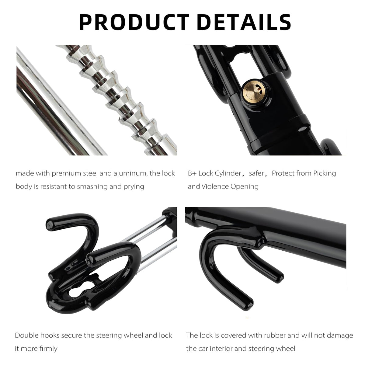Knfrxo Steering Wheel Lock For Car Universal Adjustable Length Anti-Theft Device Car Locks Double Hook Locks For Car Suv Pickup