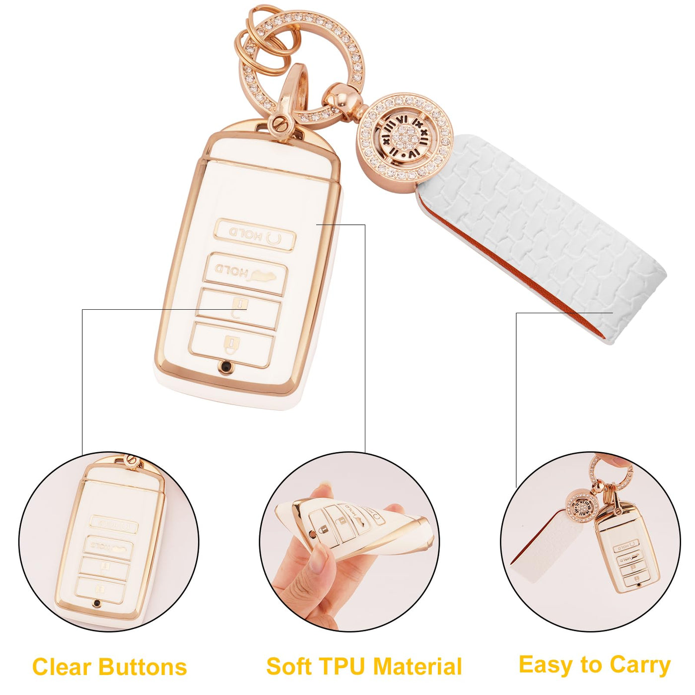 Koaudb Car Key Fob Cover for ACU-ra CDX RDX RLX TLX TLX-L ILX NSX 4 Buttons TPU Soft Smart Car Key Shell Case White Key Protecto