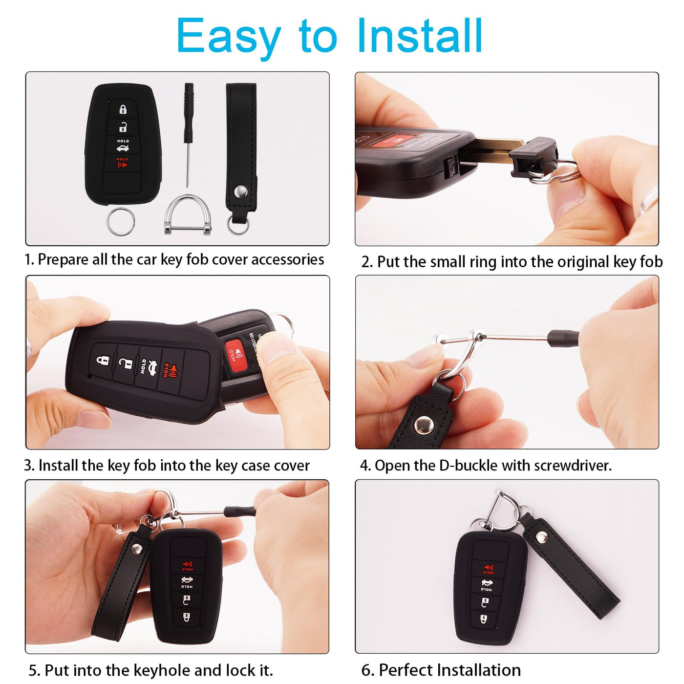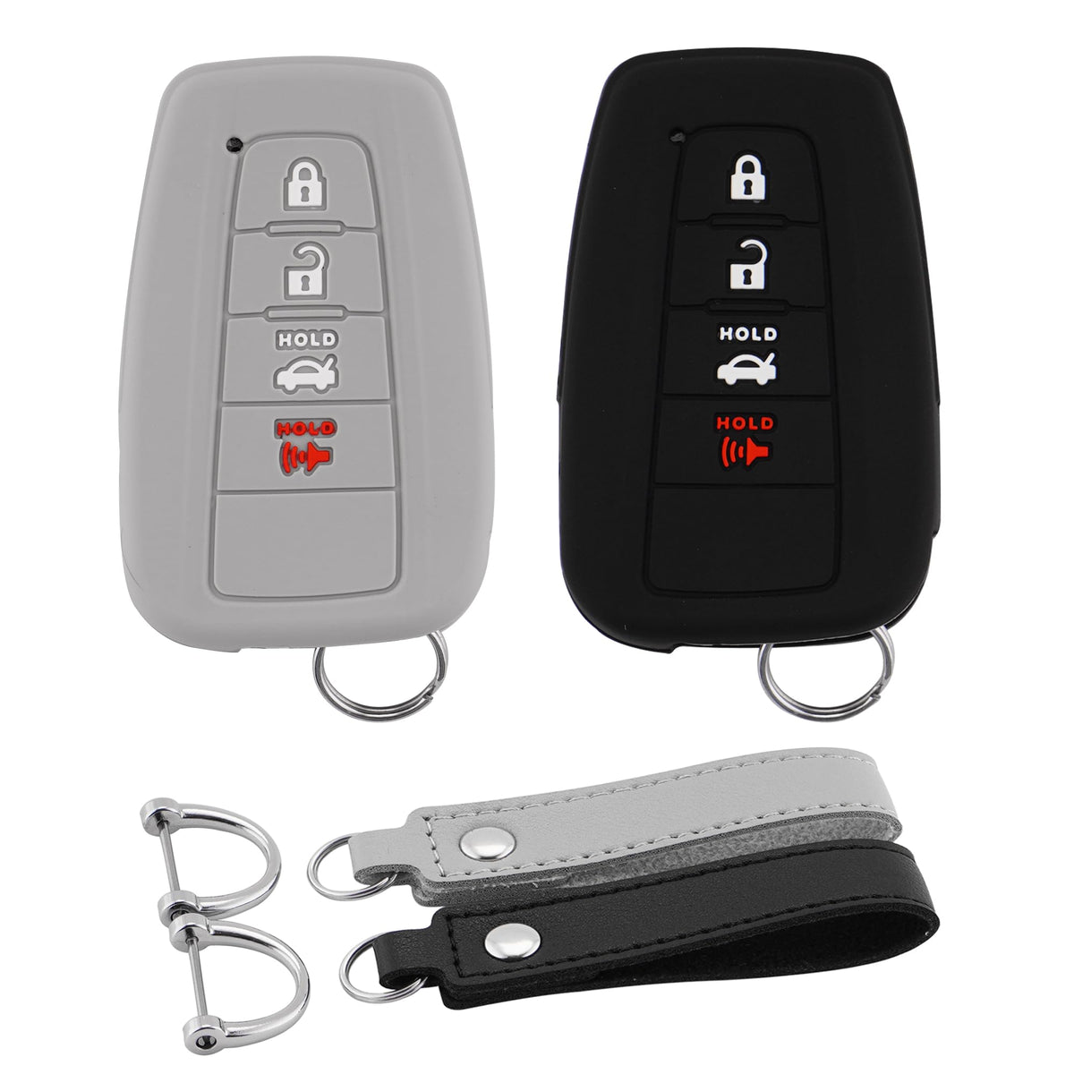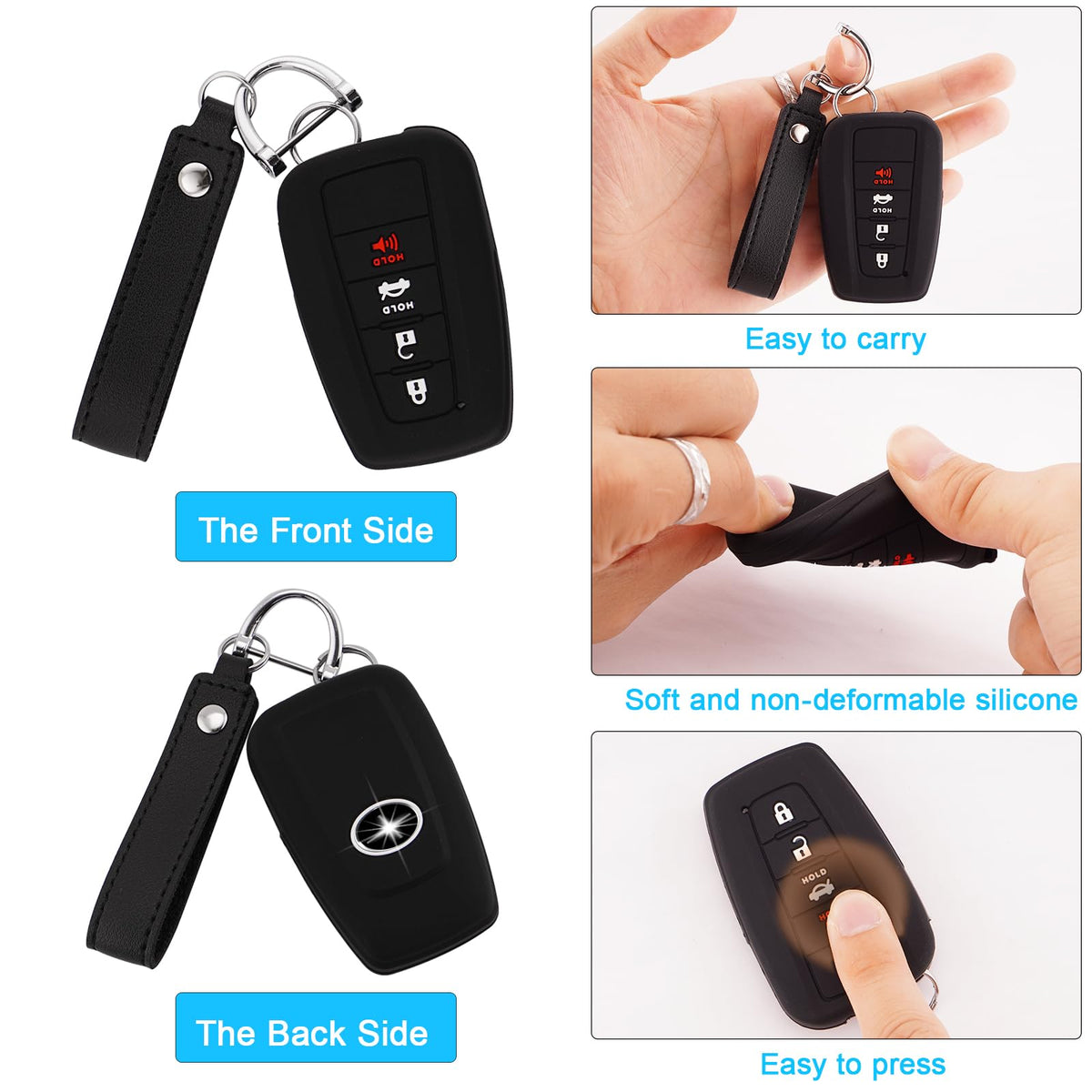 for Toyota Key Fob Cover Case for Toyota RAV4 2019-up. for Toyota Highlander 2020-up / Prado 2021-up. for Toyota Corolla XSE 2019-up / Corolla XLE 2020-up / Corolla LE 2021-up. for Toyota Camry XLE 2019-up / Camry XSE 2020-up / Camry LE 2020-up / Camry SE 2022-up. for Toyota C-HR 2017-up. for Toyota Avalon 2019-up. for Toyota Prius / Prius Prime 2016-up. for Toyota 4Runner 2022-up. for Toyota 86 / GT86 2018-up. NOTICE: Even if the type of the car is the same, the car key might be different based on the different year of manufacturing. So Make sure to follow the above picture details when placing order. SEAMLESS SILICONE KEY FOB COVER (1)Soft and Durable Silicone Made with Premium Soft Silicone, thickness of 1mm and will not fade. (2)Interference-free Undisturbed output signal while pressing the button. (3)Smooth surface Effectively protect the key from failing, scratch and dust. (4)Prevent from losing. Beautiful appearance and 360 Degree Full Protection.