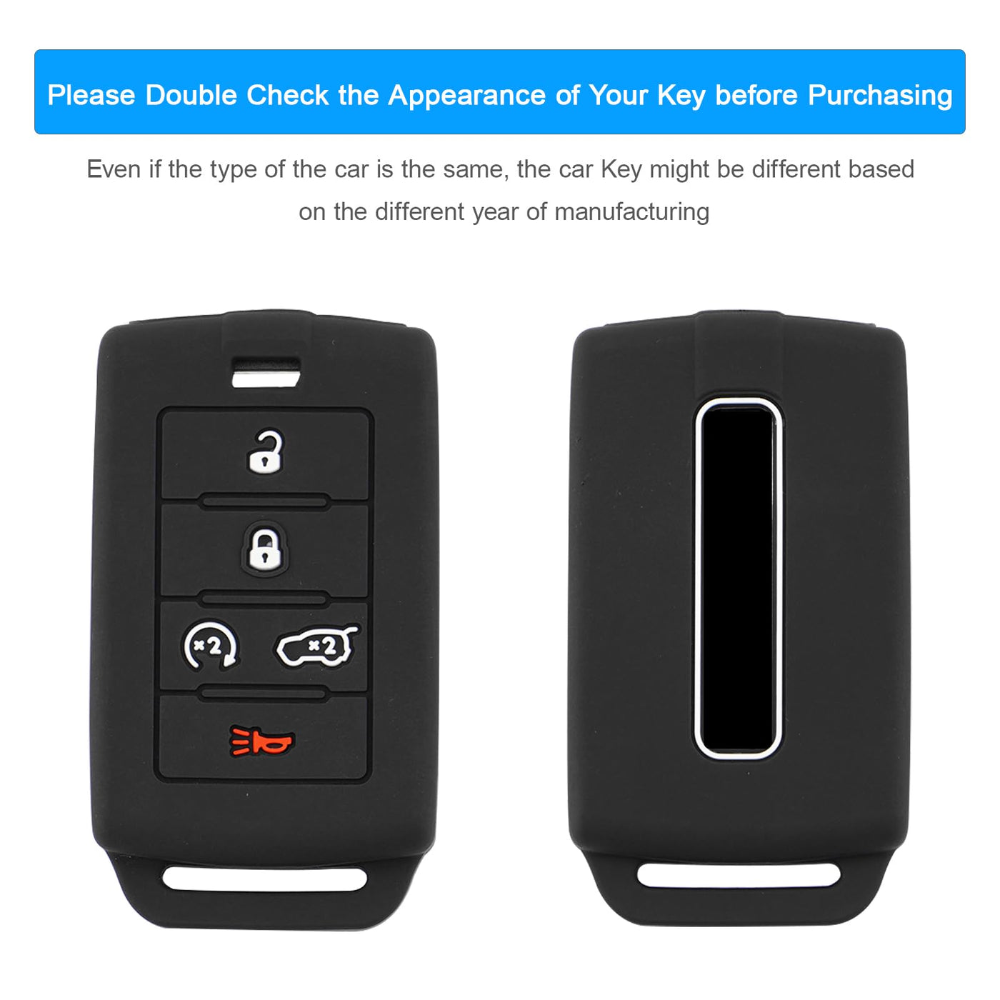 for Jeep Key Fob Cover Case for Jeep Grand Cherokee L 2021 - 2023 for Jeep Grand Cherokee 2023 for Jeep Grand Wagoneer 2022 for Jeep Wagoneer 2022 NOTICE: Even if the type of the car is the same, the car key might be different based on the different year of manufacturing. So Make sure to follow the above picture details when placing order. SEAMLESS SILICONE KEY FOB COVER (1)Soft and Durable Silicone Made with Premium Soft Silicone, thickness of 1mm and will not fade. (2)Interference-free Undisturbed output signal while pressing the button. (3)Smooth surface Effectively protect the key from failing, scratch and dust. (4)Prevent from losing. Beautiful appearance and 360 Degree Full Protection.