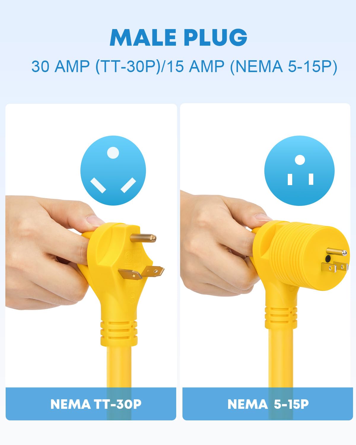 Kohree 25' Rv Power Extension Cord 30 Amp Twist Lock Rv Adapter Plug 30M/30F With Rv Power Adapter 15 Amp To 30 Amp, Led Indicat