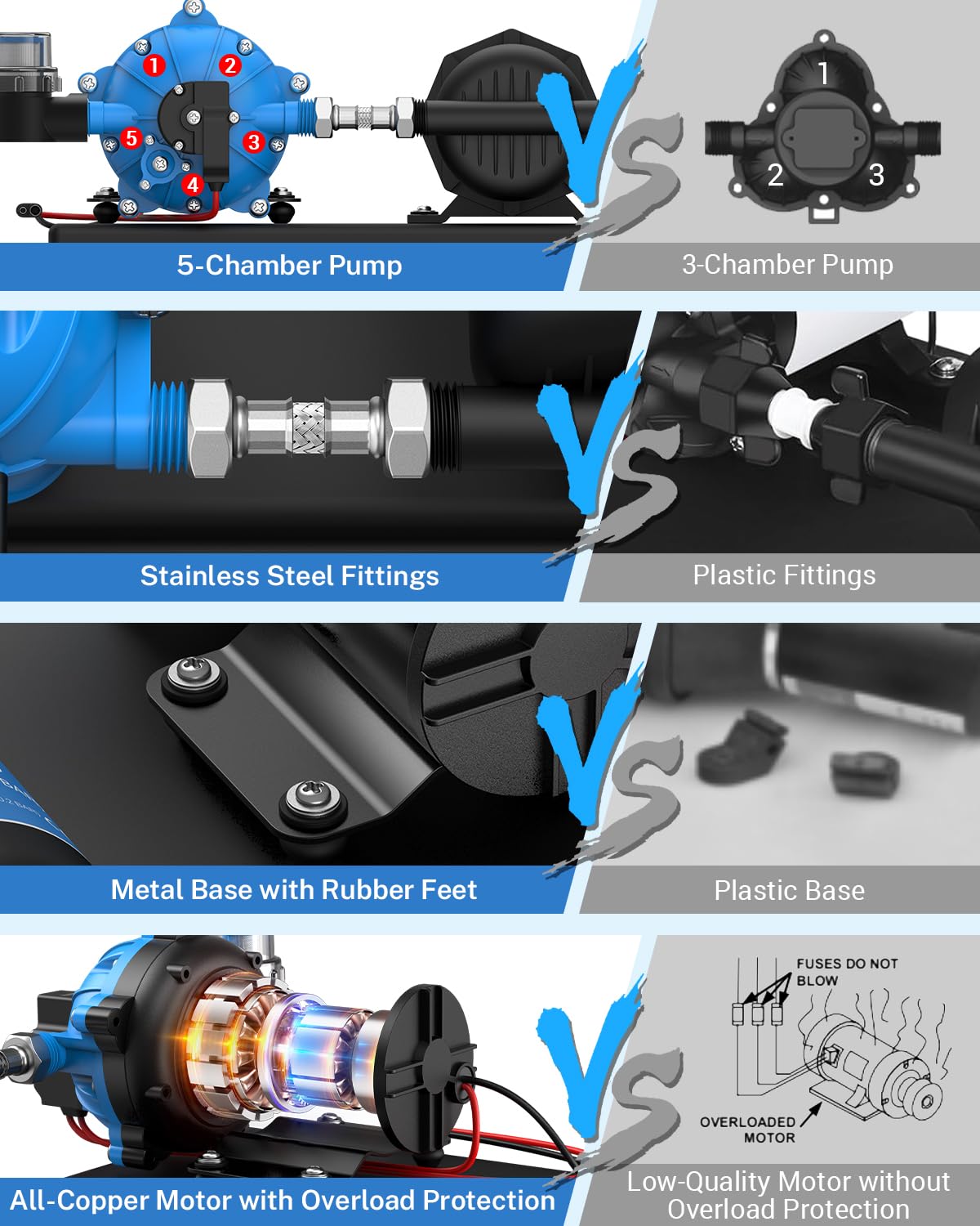 Kohree RV Water Pump 12V DC 7GPM 70PSI and 1L 125PSI Pre-Pressurized Accumulator Tank, Quiet RV Water Pump and Accumulator Tank System for RV Camping, Boat, Kitchen, Bathroom