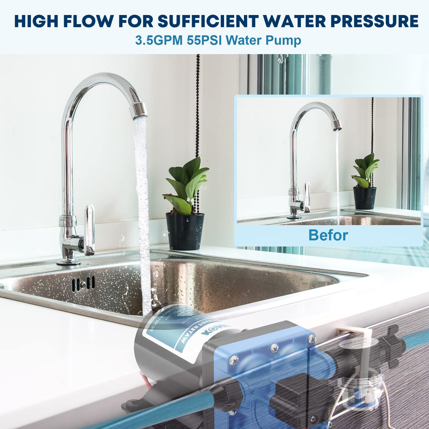 Kohree Rv Water Pump 3.5Gpm 55Psi 12V Quiet Dc Diaphragm Fresh Water Pump For Camper, Rv Marine, Yacht, Caravan, With Pressure S