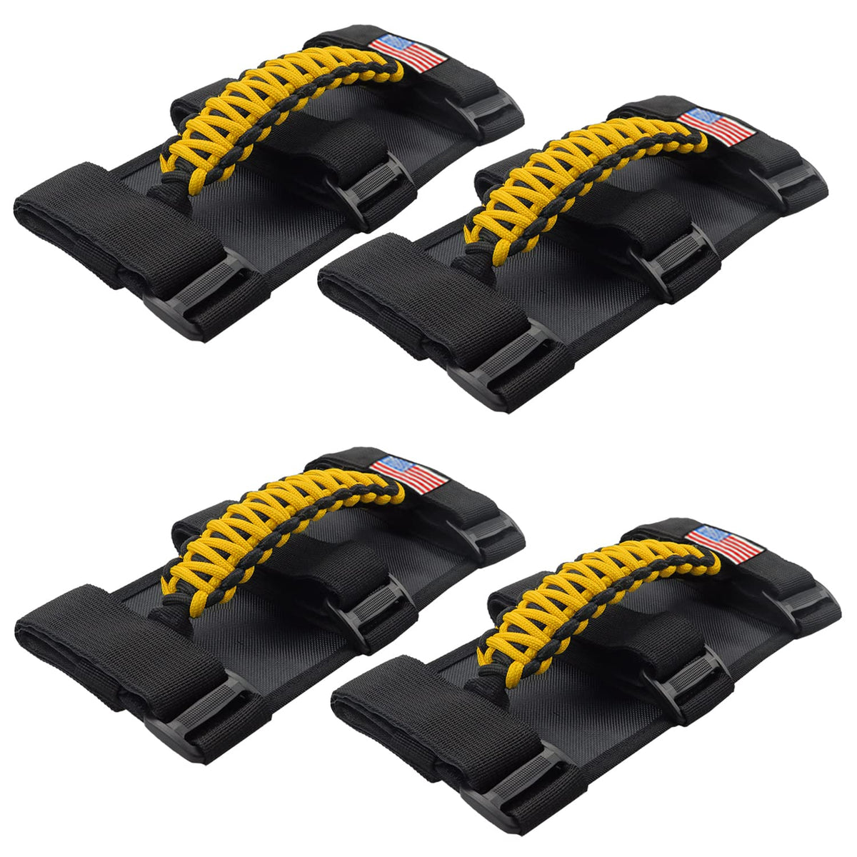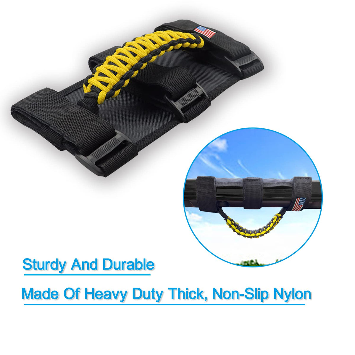Kohuipu Roll Bar Grab Handles With Us Flag, Paracord Grip Handle For Jeep Wrangler Jk Jku Jl Jlu Tj Cj Yj & Gladiator Jt, Yellow