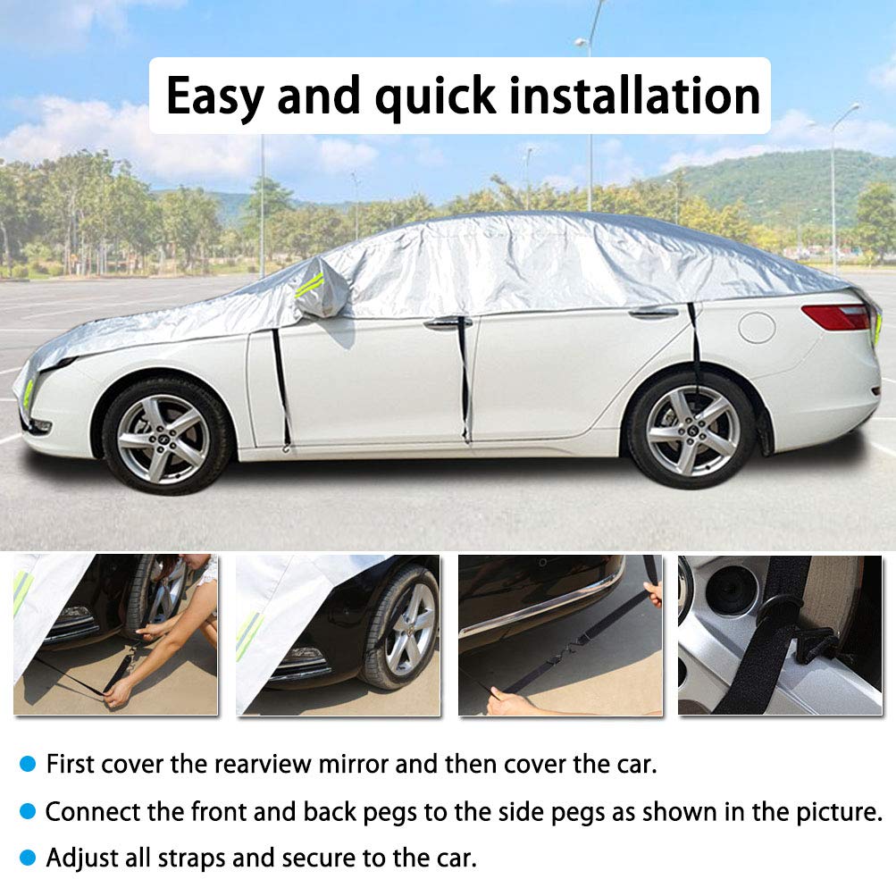 Konnfeir Half Car Cover With Cotton All Weather Car Body Cover Sunshade Cover Snow Cover Waterproof Snowproof Universal (Fit Sedan Length 176'' To 194'')