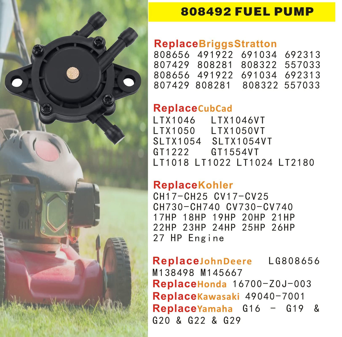Kosida Replace Fuel Pump 691034 692313 Briggs 808492 597338 Kohler 17Hp-27Hp For Lawn Mower Tractor Golf Cart Engine And Kawasaki Cub Cadet Craftsman Starter Vacuum Fuel Pump (A Set)