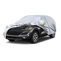 ?Suitable Model?--Suitable for Ford Escape 2000-2025 ,accurate size measurement, perfect fit to the body, so that your shopping no longer worry about size. | ?Upgraded Material?--KouKou multi-layer covers adopt newest heavy duty and secure materials. It is 100% Waterproof, great for rainproof snowproof in winter. Highly reflective aluminum fabric is good at sunproof, anti-Uv and keeps cool in summer. The inner lining is soft cotton that would protect car paint better. | ?Product Details?--1. Driver side door zipper design 2. Windproof straps stop the cover blown away by heavy Wind 3. 6pc reflective stripes remind other people at night 4.Mirror pockets make the cover more suitable and easy to put on 5.Come with a waterproof bag you can easily fold the cover and carry it with you in the trunk. | ?Extreme Weather Protection?--KouKou thick weatherproof car covers provide overall protection of vehicle from all-weather elements: dust, snow, industrial pollution, bird droppings, leaves, pollens, acid rain and etc. | ?Warm Reminder?--KouKou provides a 12-month service, beyond the normal service period. If you have any questions, please feel free to contact us, we will try our best to solve in the first time, let you buy comfortable, with rest assured.