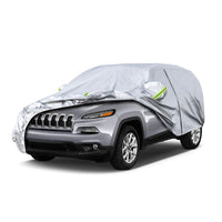 ?Suitable Model?--Suitable for Jeep Cherokee 2013-2025 ,accurate size measurement, perfect fit to the body, so that your shopping no longer worry about size. | ?Upgraded Material?--KouKou multi-layer covers adopt newest heavy duty and secure materials. It is 100% Waterproof, great for rainproof snowproof in winter. Highly reflective aluminum fabric is good at sunproof, anti-Uv and keeps cool in summer. The inner lining is soft cotton that would protect car paint better. | ?Product Details?--1. Driver side door zipper design 2. Windproof straps stop the cover blown away by heavy Wind 3. 6pc reflective stripes remind other people at night 4.Mirror pockets make the cover more suitable and easy to put on 5.Come with a waterproof bag you can easily fold the cover and carry it with you in the trunk. | ?Extreme Weather Protection?--KouKou thick weatherproof car covers provide overall protection of vehicle from all-weather elements: dust, snow, industrial pollution, bird droppings, leaves, pollens, acid rain and etc. | ?Warm Reminder?--KouKou provides a 12-month service, beyond the normal service period. If you have any questions, please feel free to contact us, we will try our best to solve in the first time, let you buy comfortable, with rest assured.
