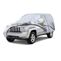 ?Suitable Model?--Suitable for Jeep liberty 2000-2025 ,accurate size measurement, perfect fit to the body, so that your shopping no longer worry about size. | ?Upgraded Material?--KouKou multi-layer covers adopt newest heavy duty and secure materials. It is 100% Waterproof, great for rainproof snowproof in winter. Highly reflective aluminum fabric is good at sunproof, anti-Uv and keeps cool in summer. The inner lining is soft cotton that would protect car paint better. | ?Product Details?--1. Driver side door zipper design 2. Windproof straps stop the cover blown away by heavy Wind 3. 6pc reflective stripes remind other people at night 4.Mirror pockets make the cover more suitable and easy to put on 5.Come with a waterproof bag you can easily fold the cover and carry it with you in the trunk. | ?Extreme Weather Protection?--KouKou thick weatherproof car covers provide overall protection of vehicle from all-weather elements: dust, snow, industrial pollution, bird droppings, leaves, pollens, acid rain and etc. | ?Warm Reminder?--KouKou provides a 12-month service, beyond the normal service period. If you have any questions, please feel free to contact us, we will try our best to solve in the first time, let you buy comfortable, with rest assured.