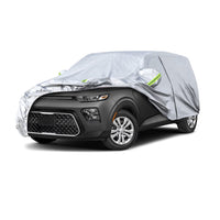 ?Suitable Model?--Suitable for Kia Soul 2009-2025 ,accurate size measurement, perfect fit to the body, so that your shopping no longer worry about size. | ?Upgraded Material?--KouKou multi-layer covers adopt newest heavy duty and secure materials. It is 100% Waterproof, great for rainproof snowproof in winter. Highly reflective aluminum fabric is good at sunproof, anti-Uv and keeps cool in summer. The inner lining is soft cotton that would protect car paint better. | ?Product Details?--1. Driver side door zipper design 2. Windproof straps stop the cover blown away by heavy Wind 3. 6pc reflective stripes remind other people at night 4.Mirror pockets make the cover more suitable and easy to put on 5.Come with a waterproof bag you can easily fold the cover and carry it with you in the trunk. | ?Extreme Weather Protection?--KouKou thick weatherproof car covers provide overall protection of vehicle from all-weather elements: dust, snow, industrial pollution, bird droppings, leaves, pollens, acid rain and etc. | ?Warm Reminder?--KouKou provides a 12-month service, beyond the normal service period. If you have any questions, please feel free to contact us, we will try our best to solve in the first time, let you buy comfortable, with rest assured.