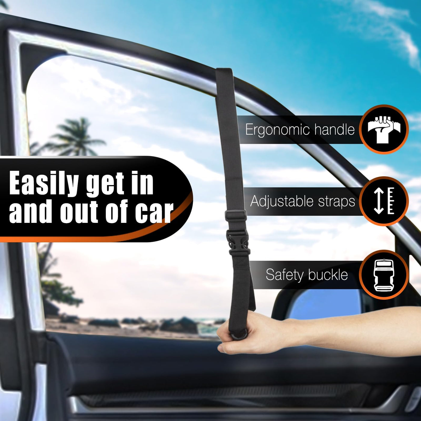 Q: What is the weight capacity of the KOUNATSURI Car Handle Assist?A: The KOUNATSURI Car Handle Assist can support up to 400lbs, making it a reliable choice for seniors, handicapped individuals, and anyone needing assistance getting in and out of a vehicle.