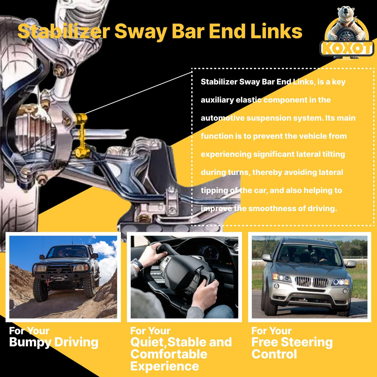 Koxot K750188 K750189 2Pcs Front Sway Bar Link For Gmc 2010-17 Terrain, For Pontiac 2008-09 Torrent Gxp V6-3.6L Only, For Chevy
