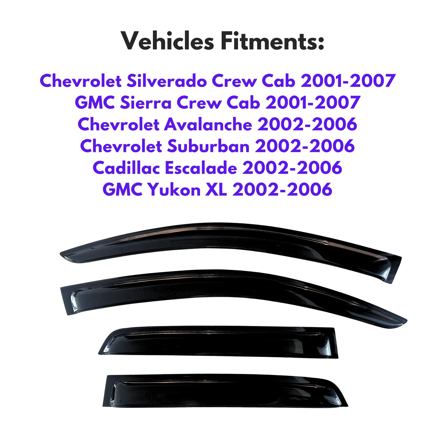 Kpy Window Visor Compatible With 2001-2007 Chevy Chevrolet Silverado/Gmc Sierra Crew Cab, 2002-2006 Avalanche/Suburban/Escalade