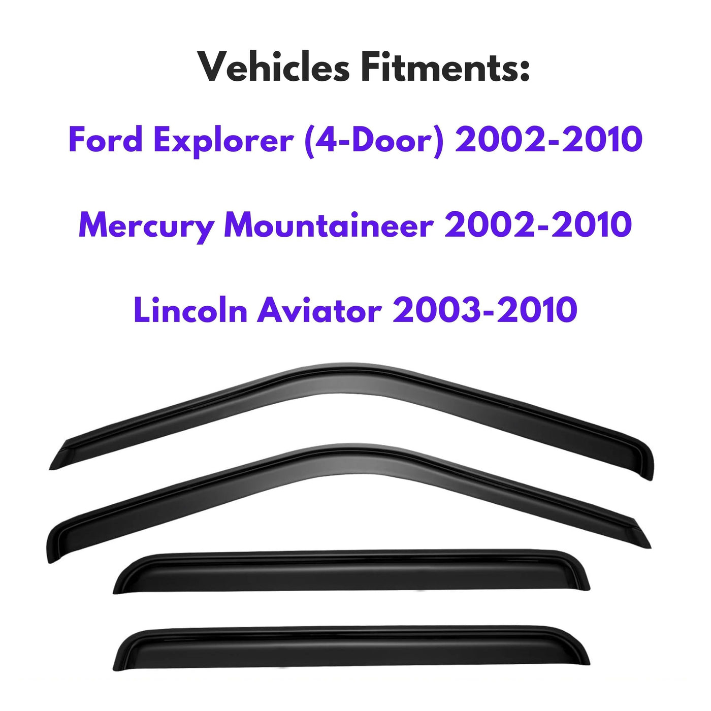 KPY Window Visor Compatible with 2002-2010 Ford Explorer (4-Door) & Mercury Mountaineer, 4PC Rain Guard Side Window Vent Deflect