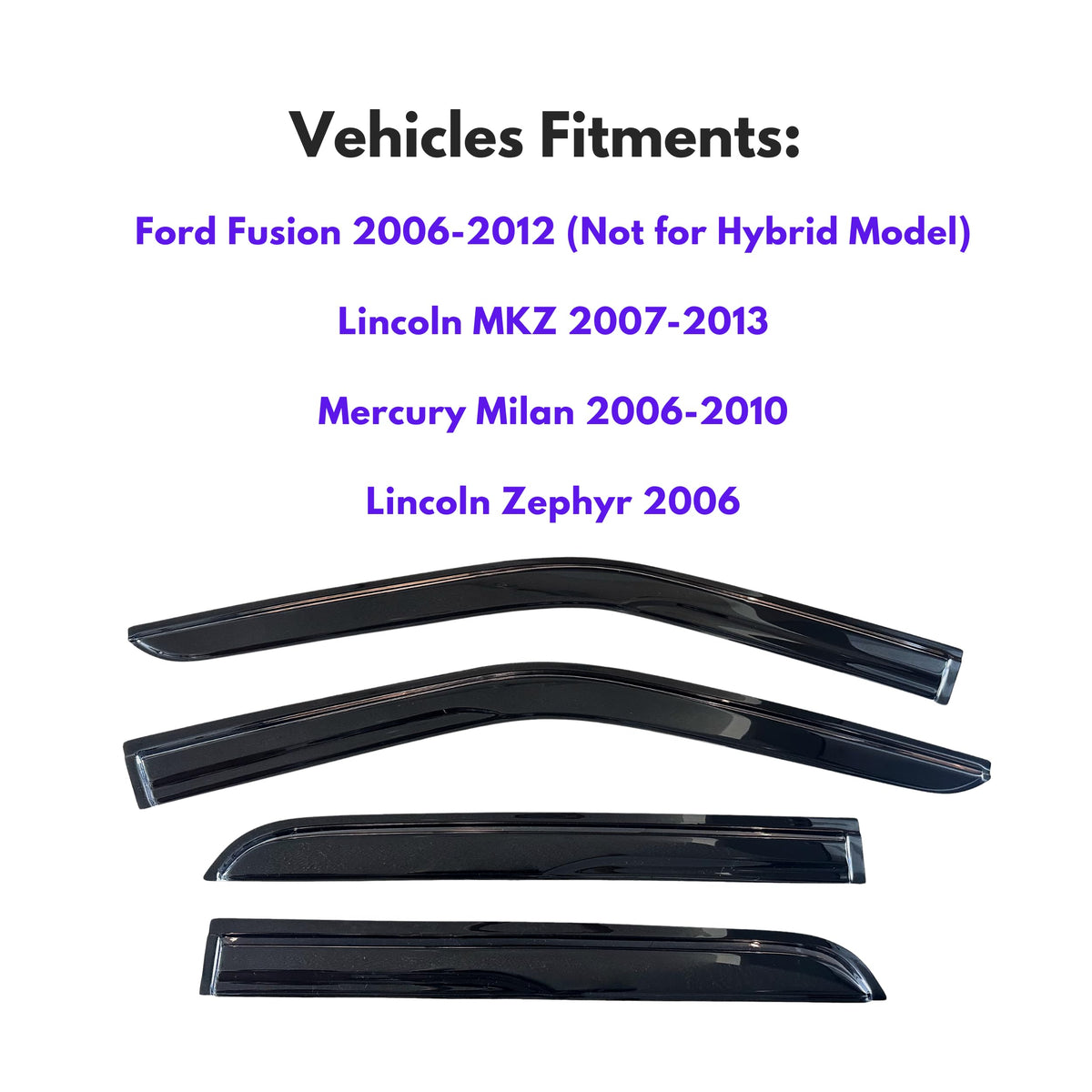 Kpy Window Visor Compatible With Ford Fusion 2006-2012, Lincoln Mkz 2007-2012, Mercury Milan 2006-2010, Lincoln Zephyr 2006, 4Pc