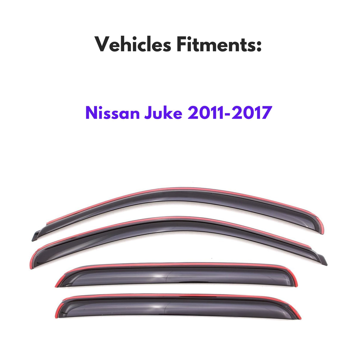 Q: Are the KPY window visors compatible with my Nissan Juke?A: Yes, the KPY window visors are specifically designed to fit Nissan Juke models from 2011 to 2017, ensuring a perfect fit for your vehicle.