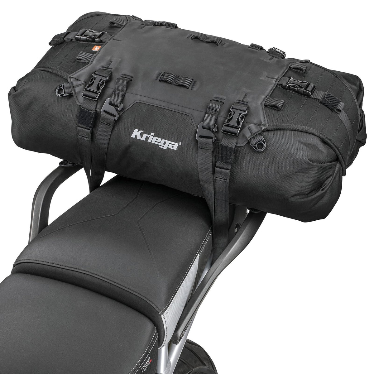 Q: Is the Kriega US-40 Rackpack waterproof?A: Yes, the Kriega US-40 Rackpack features a robust waterproof design with a double-ended roll-top closure, ensuring that all contents remain dry and secure in wet weather conditions.
