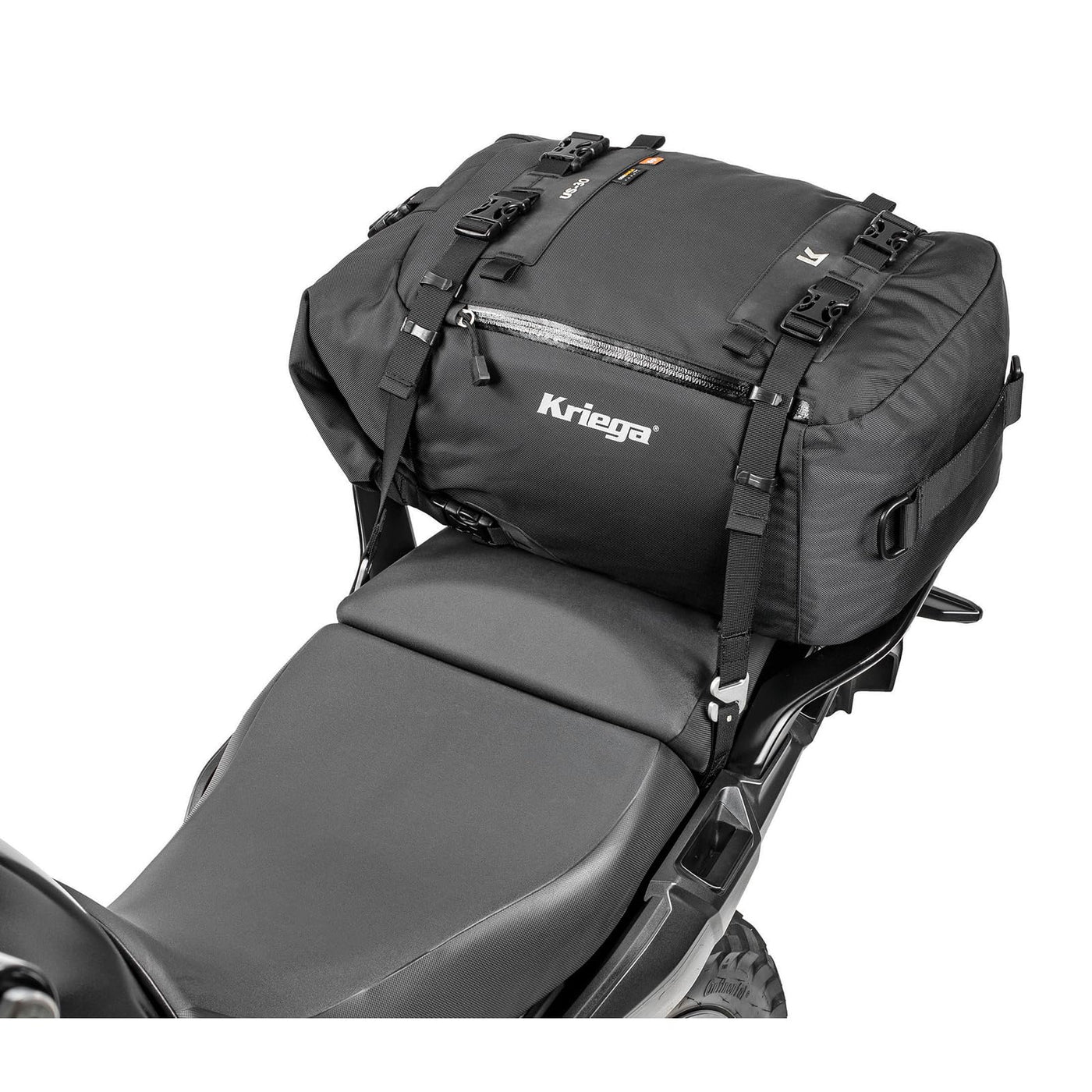 Q: How can I attach the Kriega US-30 Drypack to my motorcycle?A: The US-30 Drypack comes with 4 Subframe Loops that can be easily attached to your motorcycle's rear subframe or other metal structural components. Once secured, you can use the 4 Hook-Straps to ensure it stays in place during your ride.