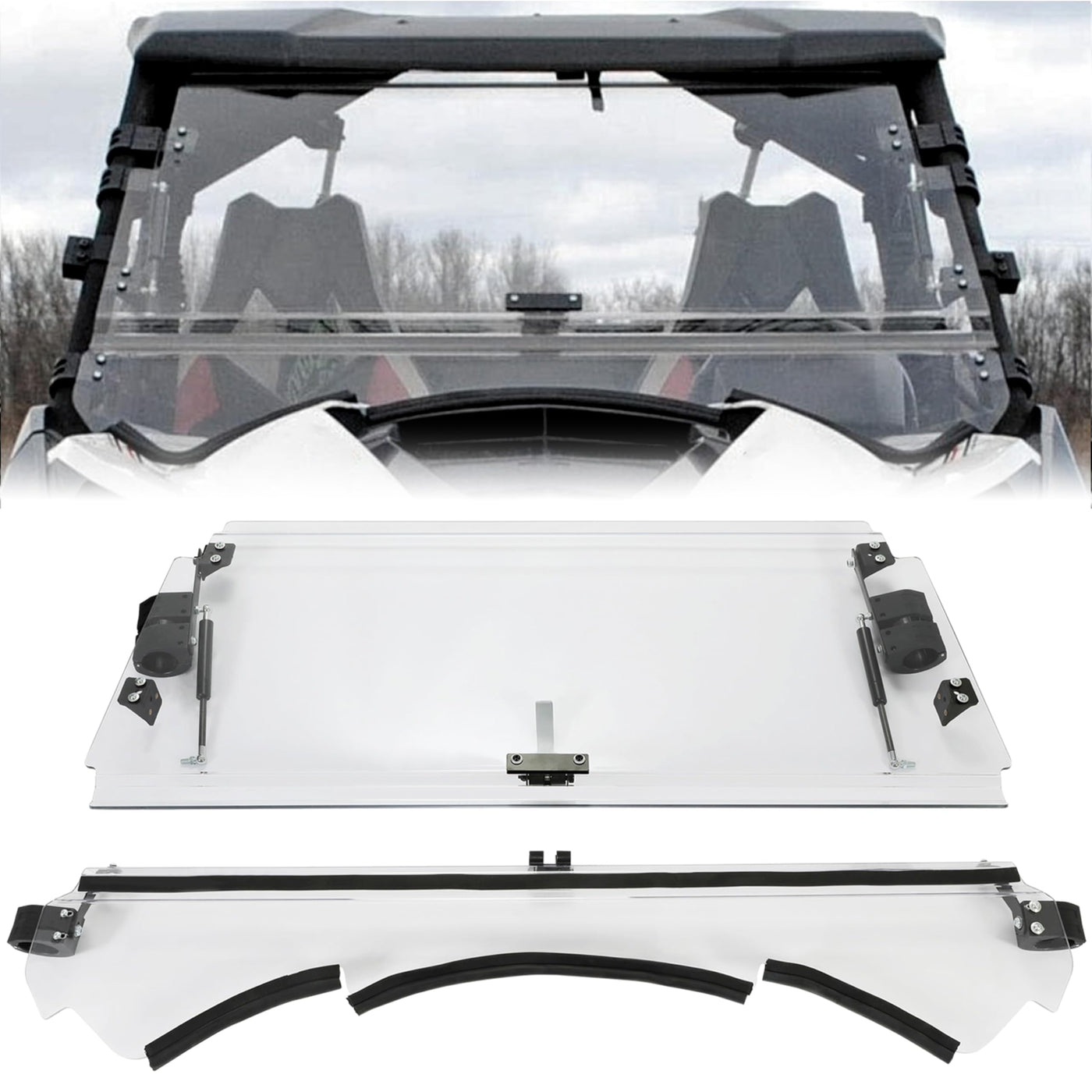 Better Adaptation - Compatible with 2013-2018 Can-Am Maverick. Compatible with 2014-2018 Can-Am Maverick Max. Compatible with 2015-2017 Can-Am Maverick Turbo. Compatible with 2015-2017 Can-Am Maverick Turbo Max. Ultimate Protection - Our windshields are made of scratch-resistant and high-transparency polycarbonate that provide excellent protection, against dirt and keep clean. In addition, it protects you from harsh weather such as wind, rain, and snow, providing you and your passengers with a comfortable interior environment while increasing driving safety. Upgrade Driving Experience - Special aerodynamic design helps you reduce wind resistance and air resistance during driving, ensuring smoother driving and improving fuel efficiency. Excellent polycarbonate material with high transparency provides a clear, unobstructed vision for rider and passenger, improving visibility and safety. Multiple Functions - Our windshield adopts a 2-in-1 design, providing you with 2 states of open and closed, fully meeting your needs. In hot summer, you can open the Windshield to enjoy fresh air and cool breeze. In the cold winter, you can close the windshield to prevent rain and snow from entering the car and keep the car warm and dry. PACKAGE & INSTALLATION - You will receive 1 X 2-in-1 Windshield. Necessary mounting accessories and instruction are included. Easy to install, finish quickly.