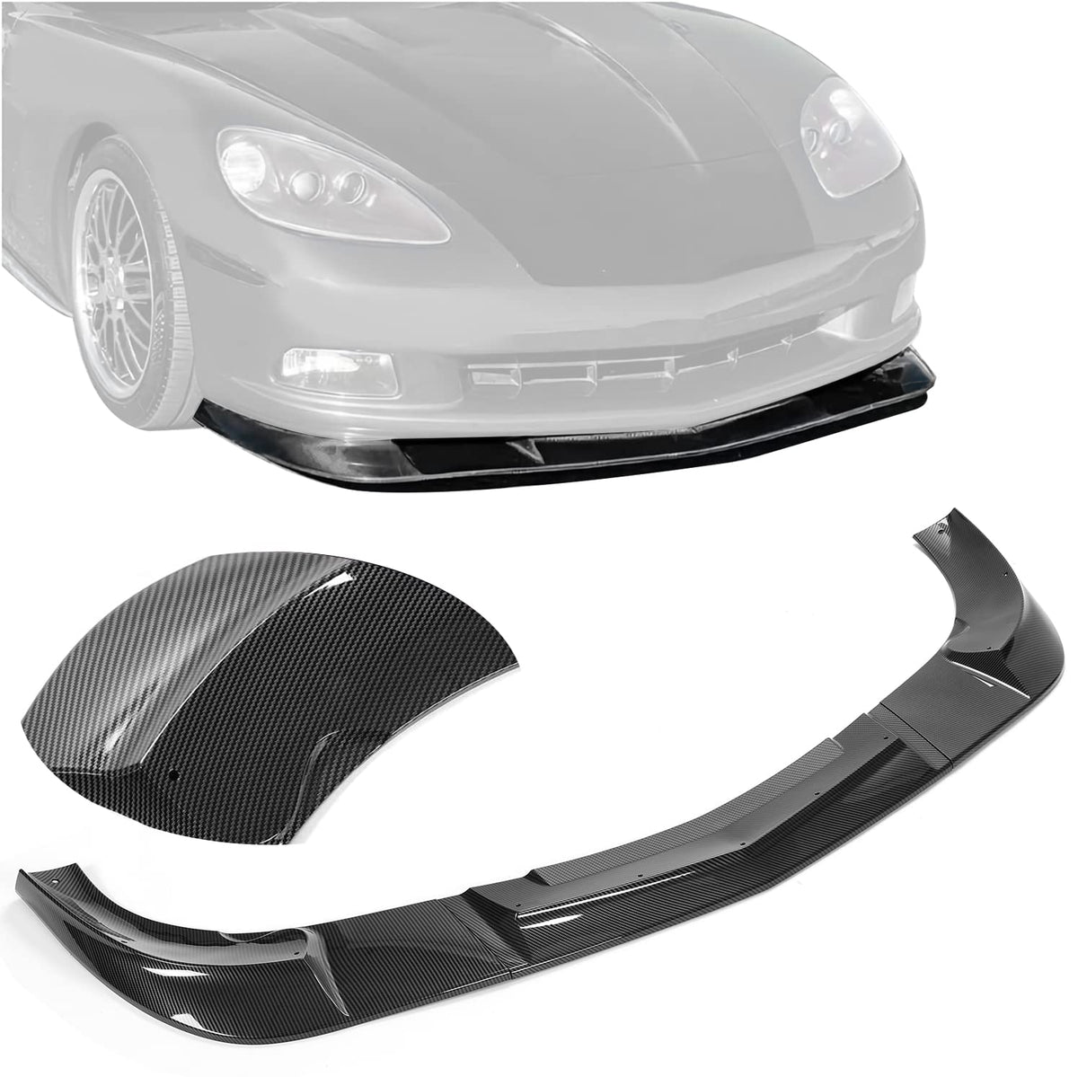 Fitment: This Front Bumper Lip Compatible with 2005-2013 Corvette C6 Base Models 2Door ZR1 Extended Style Only. Not Compatible with Wide Body Models. Superior Material: Made of ABS plastic material, light weight, strong structure and long lifespan. Unique carbon fiber color finish to add a different style. Effective Protection: The bumper lips are effective in protecting your car from damage in the event of a collision, and also effective in preventing marks such as scratches. Aerodynamic Appearance: Improve the visual effect and create a new iconic look. Three-stage wrap-around design provides a sleek look that minimizes wind resistance and improves fuel economy. Easy To Install: 3Pcs x carbon fiber style front bumper lips, mounting hardware and instructions are included. The mounting holes are drilled for direct bolt-on installation.