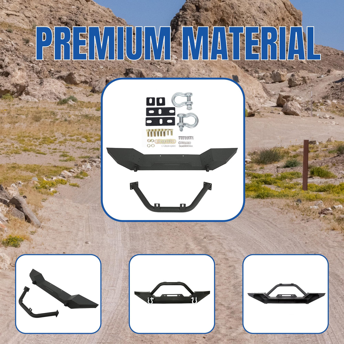 Description -1X Front Bumper: Very Sturdy,Protects Your Beloved Vehicle From Clash And Impact While Still Keeping The Cool Tough-Guy Look. All Over The Bumper Has A High Quality Textured Black Powder Coat,Prevent Damage From Rust And Corrosion. -2X D-Ring: 4.75 Ton Capacity Each, Works Perfectly With Tow Straps, Snatch Straps, Tree Savers And Snatch Blocks. -2X Light Tab: On Pre-Runner Hoop ,Bring Convenience To Mount Extra Lights. -Smooth Polylines Design That Never Go Out Of Style. -Direct Bolt-On Installation,No Drilling Or Cutting Required,Save Your Time And Energy.