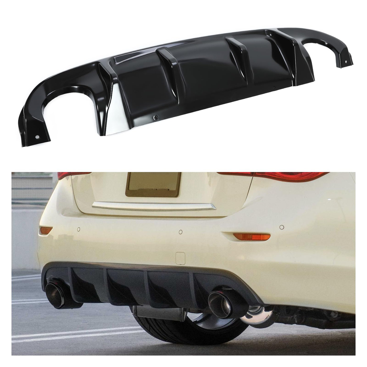 FITMENT - The Rear Diffuser compatible with 2014-2017 Infiniti Q50 all 4 Door Sedan models. Not compatible with 2018 and up models. IMPROVE AERODYNAMICS - The rear diffuser increases the downforce of the vehicle, which increases grip and reduces aerodynamic drag, improving performance. Effectively protect the vehicle in case of collision, friction and rear-end collision. UPGRADE APPEARANCE - The sporty look adds aggressive style to your car, setting it apart from other vehicles on the street. PACKAGE INCLUDED - You will receive 1 Gloss Black Rear Diffuser. No hardware and instructions. INSTALLATION - 3M tape fixing. Professional installation is always recommended.