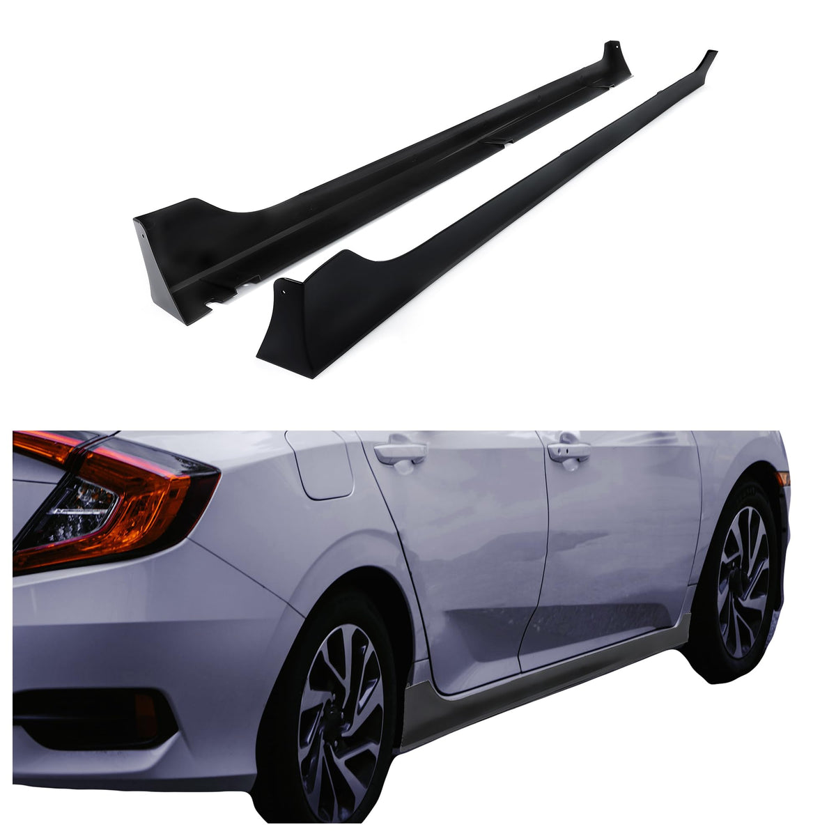 FITMENT - Our Side Skirts are compatible with 2013-2017 Honda Accord 4 Door Sedan Models ONLY. **NOT FIT 2 Door Coupe Models.** Please make sure that if your car is compatible with our products. IMPROVED AERODYNAMICS - Side skirts reduce the body's ground clearance above the road, creating less air pressure under the car, improving road-holding and allowing the car to be driven safely at higher speeds. ENHANCE APPEARANCE - The side skirts are also a design element that adds to the sporty feel of the car's design and enhances its visual appeal. Unpainted black that you can paint to match the colour of your car. ADDITIONAL PROTECTION - The side skirts are fitted to the sides of the car to provide a degree of protection against the splashing of stones and debris from the road, which can scratch the surface of your car. INSTALLATION & PACKAGE INCLUDED - Screws help hold it in place and 3M tape makes it more securely mounted on your car. If Your Car Has Mud Flap Guard, Removal Of Mud Flap Guard Is Required. You will receive 1 Pair of side skirts, mounting hardware and instructions.