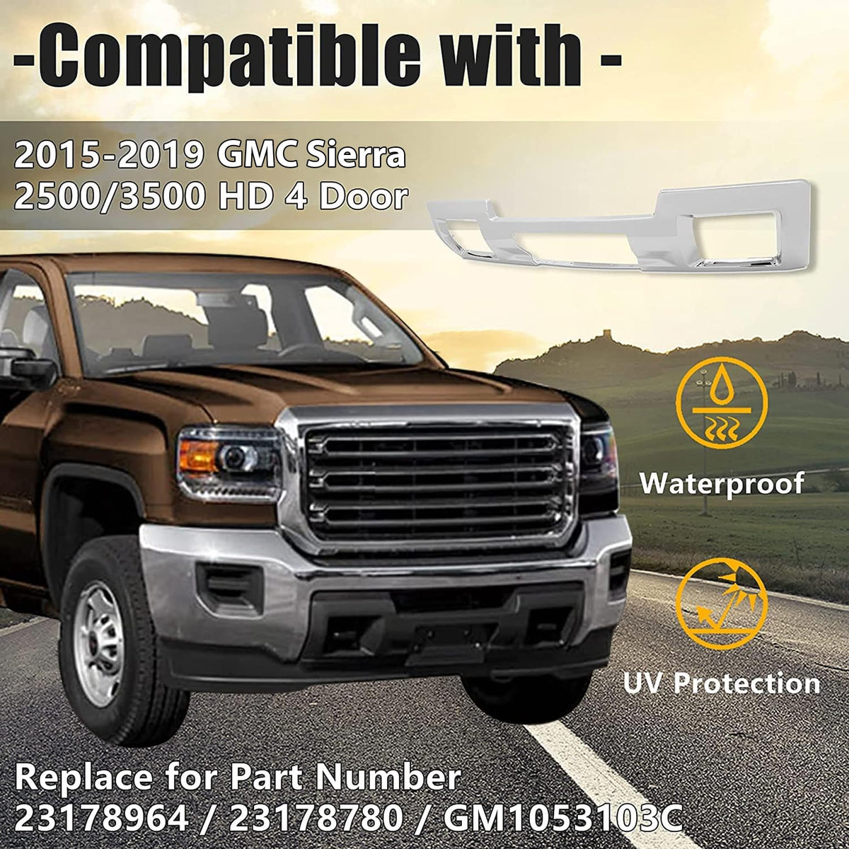 FITMENT - Compatible with 2015-2019 Sierra 2500/3500 HD MODELS. PREMIUM ORIENTED: Made of premium plastic, which is anti-corrosion and waterproof, ensuring a good performance and long-lasting usage. COLOR: Silvery | Surface Finish: Chrome. Direct replacement. Replace for Part Number 23178964 23178780 GM1053103C. PACKAGE INCLUDED: 1 X Front Bumper Skid Plate; Instructions NOT included. INSTALLATION: Professional installation is highly recommended. Direct Bolt Installation.