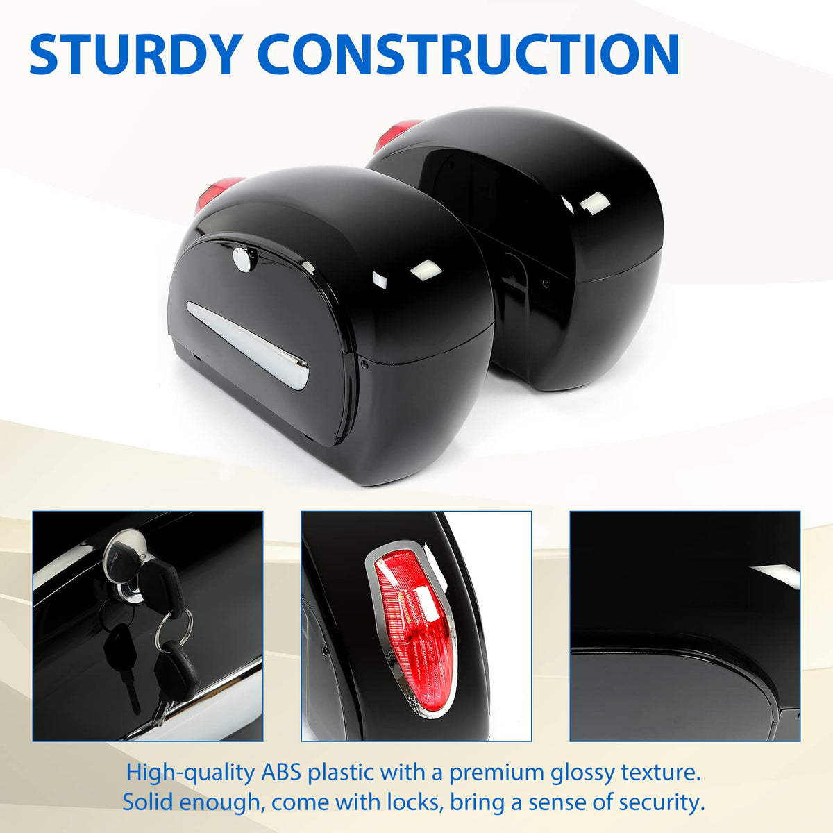 Kuafu Universal Motorcycle Hard Saddlebag Trunk W/Lights W/Locks Compatible With Honda Yamaha Harley Suzuki Kawasaki Motorcycle