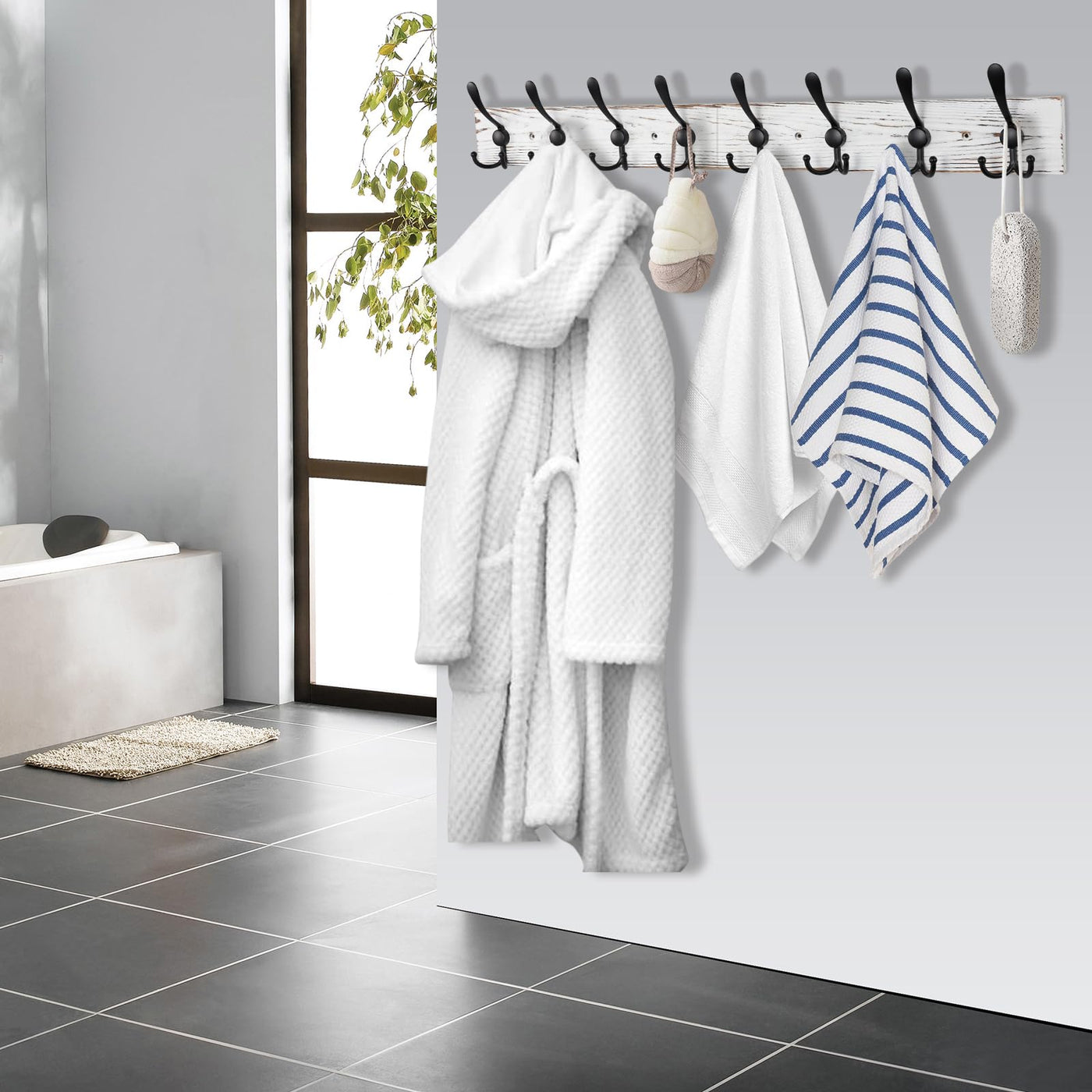 Kuhome 32.2'' Large Coat Rack Wall Mount Coat Hooks With 8 Metal Black Triple-Hooks Old White Pine Real Wood Plank Hat Rack For Wall Hooks