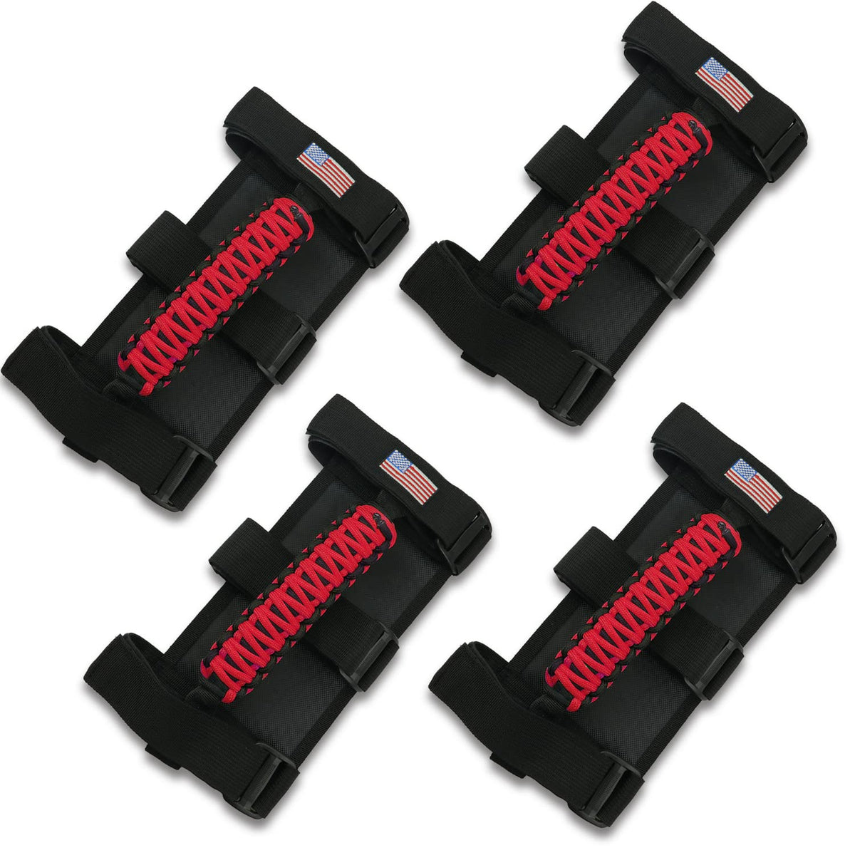 Kujunpao 4 X Roll Bar Grab Handles Grip Handle Compatible With Jeep Wrangler Jlu Jk Jku Tj Yj Lj Jt Jl & Gladiator Jt 1955-2022 Utv & Atv(Red)