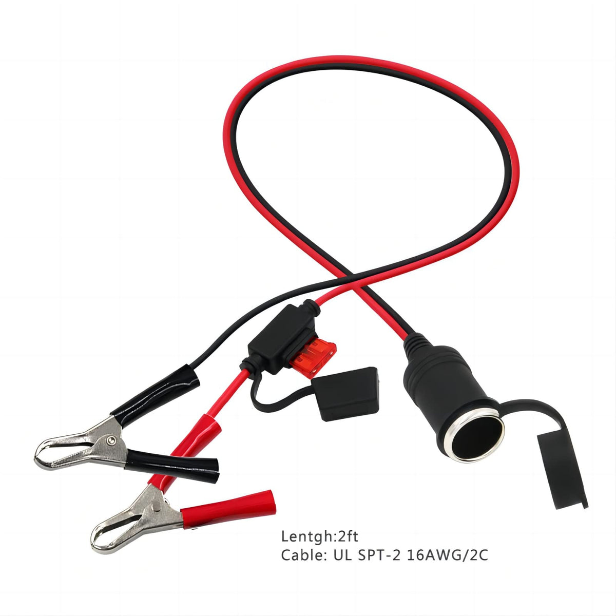 Alligator Clip Extension Cable With Female Socket: - Signed, Nickel Steel With Black Insulation-Grip, Rating: 30A + Signed, Nickel Steel With Red Insulation-Grip, Rating: 30A Dust Cover: Molded Pvc Black 45P Molded Pe Transparent Car Fuse: 10A Terminal: 205 Female Type, Nickel Plated Brass Cable: Ul, Spt-2, 16Awg/2C Od: 3.7*7.4Mm Color: Red/Black Length: 2Ft Note: All Cables Are 100% Tested: Any Open, Miswiring&Shot Are Not Permitted. Withstanding Voltage: Dc 300V At 10Ms. Insulation Resistance: 5M Ohm(Min) Conductive Resistance: 5 Ohm Max. All Material Must Are Rohs Compliance Package: 2 Pcs Kuncan Brand: Kuncan Is A Professional Manufacturer Who Sells Various Electronic Accessories Auto Parts And Mobile Phone Cables Accessories To Usa, Euro, Asia And So On. High Quality Promise. We Insist In Using Pure Copper As Cable Conductor And Rohs Material To Guarantee The User Experience. Keep Developing New Product To Meet Customer'S Increasing Demand. Any Questions And Problems, Please Feel Free To Contact Us , We Will Answer And Solve It Asap To Meet Your 100% Satisfactory With Best Service.