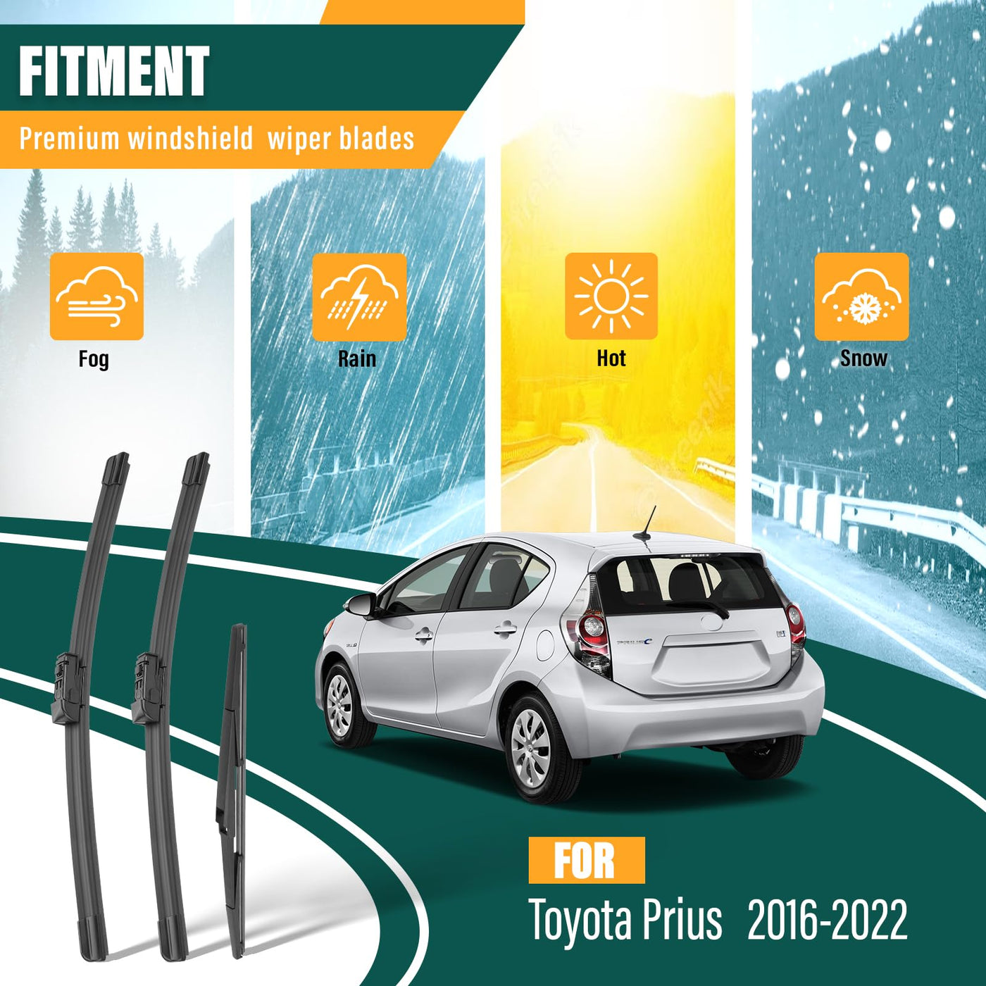 Q: What vehicles are compatible with the KVQ Windshield Wiper Blades?A: The KVQ Windshield Wiper Blades are specifically designed for the Toyota Prius models from 2016 to 2022, ensuring a perfect fit and optimal performance.