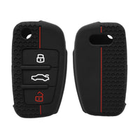Kwmobile Car Key Cover Compatible With Audi 3 Button Flip Key Key Cover - Silicone Protective Car Key Fob Case - Black/Red