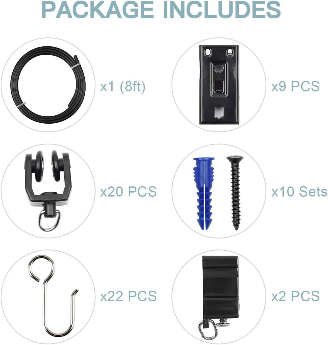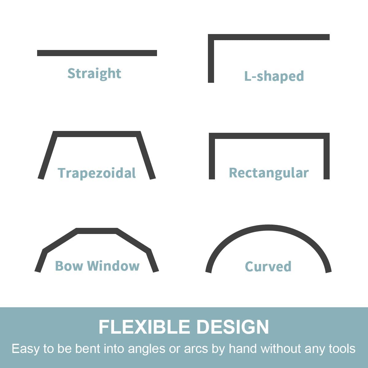 ?FLEXIBLE & DURABLE?This I rail curtain track is made of high qulity durable material, easy to be bent into various shapes, such as trapezoid, bow, L-Shape, arc, suitable for any window and ceiling track room divider system.Perfect for use in most of areas. | ?Easy Installation?With our installation guide in the package, it is super easy to bend and install our ceiling I rail curtain track.And it can be cut down to size by a fine tooth hacksaw, easy to DIY your room space. | ?Heavy Duty?Embedded metal wire makes the track stronger and more flexible, can bend at any angle without breaking. Enclosed roller with 304 stainless steel hook, can hold heavy fabric curtains and glide smoothly around your bay and bow windows. | ?Easy Glide?Runs smoothly & silently with quality rollers. This set includes all hardwares for Ceiling Mounting, for Wall Mounting please buy wall mounting brackets from our store. | ?Multi-Purpose Use?This curtain track can be used to hang window curtains, room divider curtains, RV curtains, shower curtains, backdrop, holiday decoration and so on. | ?Package Includes?Come with one flexible ceiling track(8 ft), 20 Pcs track rollers, 22 Pcs hooks, 10 sets screws, 9 Pcs ceiling-mounts, 2 Pcs end caps and a detailed installation guide.